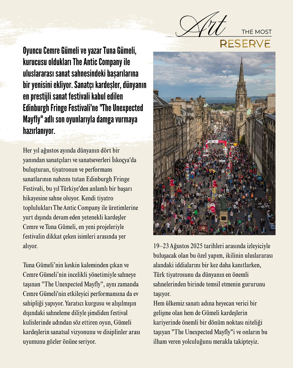 Sibling artists Cemre Gümeli and Tuna Gümeli are taking part in the Edinburgh Fringe Festival, one of the world's most prestigious arts festivals, with their new play "The Unexpected Mayfly," produced by their company, The Antic Company. The play will be staged at the festival, held every August in Scotland, and is scheduled to meet the audience between August 19-23, 2025.